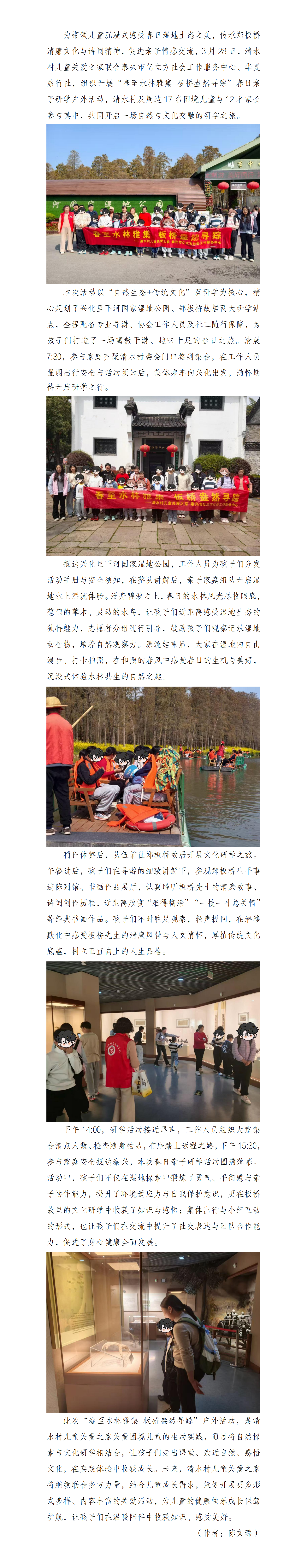 虹桥镇清水村儿童关爱之家: “春至水林寻雅趣 板桥故里品书香”