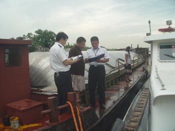 据了解,进入8月份以来,像这样的安全检查每天都要进行了几十次甚至上百次。在长江入江口施行24小时监控,对辖区危险品码头、危险品船舶开展逐一检查。市地方海事处处长季晓河介绍说:他们将坚决贯彻落实“五定”措施,定航段、定人员、定小艇、定责任、定制度,切实保障奥运会期间的水上交通安全和航道畅通。 |