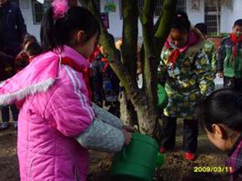 又是一年芳草绿,依然十里杏花红。 在这阳光明媚的三月,大生小学全体师生开展了别开生面的“知树、护树、植树”活动,迎接植树节的到来。 全校近千名学生通过各种渠道,了解校园内各种树木的生长特性、形态特征,有的还制成精美的卡片资料。中高年级学生还开展了树木成长轨迹的记载活动。他们在老师的带领下,来到最熟悉的树木前,仔细观察。介绍了树木相关资料,有的学生还与课文、课外积累的经典诗文相融合,朗诵了《咏柳》、《雪松赞》、《玉兰花》、《宋庆龄故居前的樟树》等优美诗文,使学生在绿树丛中享受着美文的熏陶。 同学们还自带着工具,对学校里的树木进行养护,他们有的修剪枯枝败叶,有的给树木培土,有的在老师指导下给树木进行病虫防治。