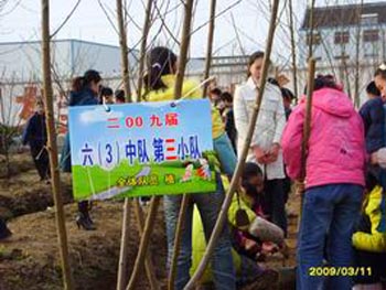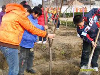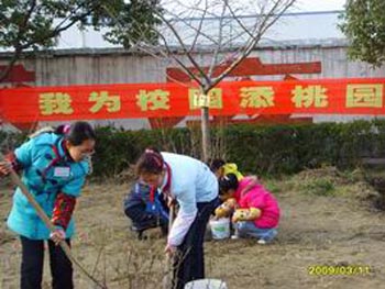 最吸引人眼球的当属六年级学生植“毕业树”了,全校160多名毕业生把对母校的眷恋、对老师的感谢之情随着一棵棵桃树扎根于母校的热土之中。 |