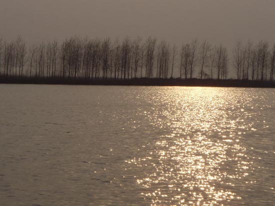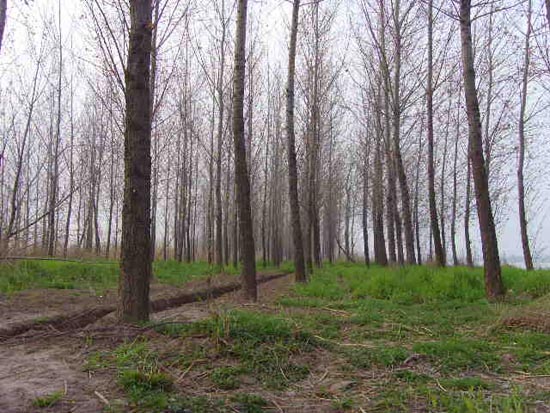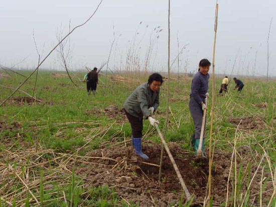 图三为三桥村农民正在江心洲上栽植意杨林。