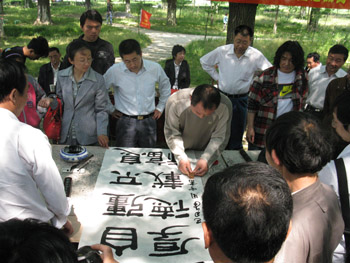 5月9日上午,我市第二届残疾人书画比赛暨全国残疾人书画比赛选拔赛在宣堡镇古银杏森林公园举行,共有20名残疾书画爱好者参加了比赛。 比赛中,参赛者们在郁郁葱葱的银杏树下现场创作,泼墨挥毫。这次比赛的主题是:为纪念中华人民共和国成立60周年,展现残疾人自强不息的精神风貌。来自黄桥镇的参赛选手李东升在6岁时,一场车祸夺去了他的双腿,但是他从未放弃过艺术创作,靠双手打开了艺术的大门。 赛后,评委对所有的参赛书画作品进行了认真评选,市人大副主任王中先为获奖选手颁奖。 |
