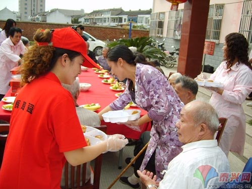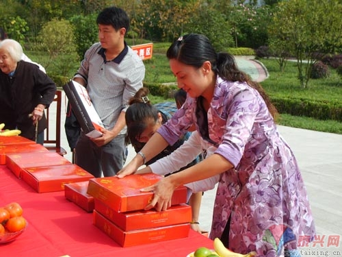 9月28日下午,泰兴大王椰板材店赵娟总经理为大庆老人院送上了月饼、水果等物品,看望在院中过国庆、中秋的老人。并和志愿者们一起为老人们表演了节目。