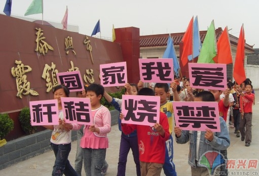 曲霞组织小学生上街宣传禁烧秸秆(图)