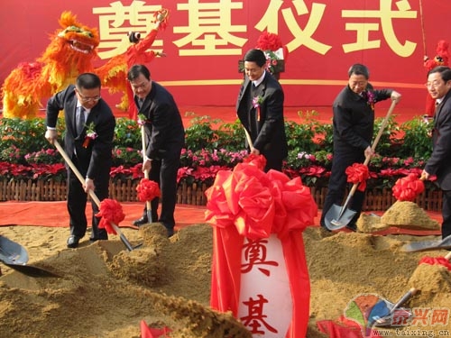 图为市领导与投资建设方代表为新城项目奠基。 (记者 孙纪刚 特约记者 戴群)11月22日上午,由江苏省泰兴虹桥工业园区与香港凯旭集团、上海惠天然投资有限公司、南通五建建设工程有限公司投资合作的重大项目——虹桥新城正式开工奠基,标志着虹桥工业园区建设进入加速期。 市领导张兆江、高亚梓、张泽民、刘荣华、田之本、张伟、姜文湘、朱从云和投资建设方代表出席奠基仪式,并为虹桥新城项目开工奠基。市委书记、市人大常委会主任张兆江和香港凯旭集团总裁胡斌为江苏虹桥新城建设开发有限公司揭牌。市委常委、副市长、虹桥工业园区党工委书记、管委会主任刘荣华主持了奠基仪式。