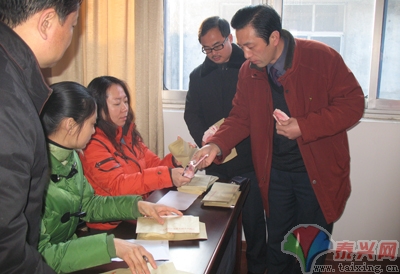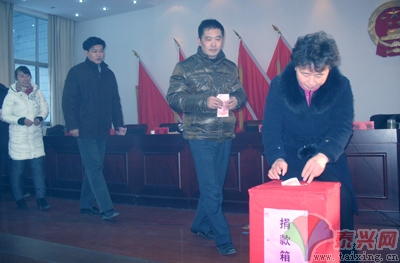 图为元月6日上午,姚王镇党员干部冬训班上,党政负责同志和机关工作人员踊跃捐款的情景。
