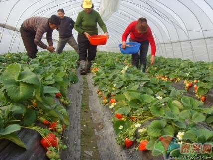 (记者 孙纪刚 朱妮 特约记者 张莉)元月18日下午,姚王镇石桥村鑫源农业生态园百亩草莓大棚内,10几个农民工正在忙着采摘、包装草莓,准备运往无锡和泰兴当地的各家超市销售。一群辛勤的小蜜蜂在大棚内快乐地飞舞,鲜艳的草莓在绿叶的衬托下,更加让人垂涎欲滴。 鑫源农业生态园是石桥村党委去年引进的高效农业项目,占地120亩,基本上以草莓种植为主。园主刘爱群原先创办过驾校,有了一定的资金积累以后,他毅然决定投资80万元种植草莓,并于2009年3月份开始育苗,开展基础设施建设。2009年9月初,100多亩大棚草莓就全部定植到位,目前开始批量上市。 “应该说这个项目是很成功的,预计每亩效益都在一万元左右。”刘爱群掩饰不住满心的喜悦,他说,“这批草莓全部是‘丰香’新品种,产量高,口感好,果型大,单重达到25克至50克,一直持续到今年5月底都有草莓上市,每亩产量可以达到1500公斤。目前已经与无锡的几家大型超市和泰兴本地的时代超市达成了供需协议,每公斤批发价达到了20元,还是供不应求。泰兴的大润发连锁超市也即将前来考察洽谈,销售形势非常喜人。” 刘爱群还从浙江高薪聘请了一名草莓种植专家,专门负责草莓生长各个环节的技术指导,传授病虫害防治技术要领,并在每个大棚内都放养了一箱蜜蜂,为草莓授粉,防止果实畸形。刘爱群介绍说:“蜜蜂对环境的要求非常高,凡是来大棚内采摘、品尝新鲜草莓的游人和市民,看到了小蜜蜂,才会相信这里的草莓是真正的无公害绿色产品。” 草莓园的成功,坚定了刘爱群扩大规模的信心。今年他准备再投入百万元左右,使草莓园达到200亩的规模。同时,他还将发挥草莓园紧靠宁通高速和省道城黄线的区位优势,开辟生态农业观光旅游项目,带动一方经济发展。 |