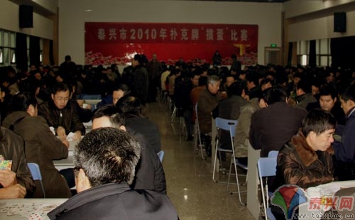3月2日上午,泰兴市2010年扑克牌掼蛋比赛在该市文化中心9楼会议室举办,来自全市各乡镇、部门的169对选手参加比赛。