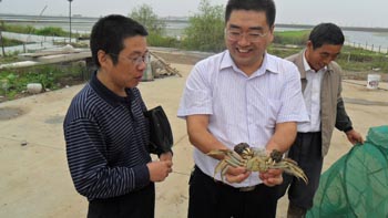 (记者 孙纪刚 特约记者 陈王明 蔡军)“秋风起,蟹脚痒”,虹桥镇公殿村江蟹养殖场的螃蟹开始批量上市。因为是地道的江蟹,每市斤价格都在百元左右,仍然供不应求。 金风送爽,虹桥镇40多家垂钓中心人气激增。三天的中秋小长假和七天的国庆长假,沿江十多家具有一定规模的垂钓中心累计接待垂钓休闲的客人不下五六千人次。 虹桥镇拥有15.8公里长江岸线和近万亩江心洲,发展水产养殖和江滩养殖有着得天独厚的优越条件。长期分工在虹桥镇的泰兴市渔业科技入户指导小组工程师恽九生介绍,通过政策扶持、科技辅导、能人带头等有效措施,虹桥镇的水产养殖已经形成了“传统项目向科技要效益,特水养殖靠品种增优势,垂钓休闲以服务揽人气”的生动格局,成为名副其实的农民增收“水产银行”。到目前,水产养殖户已达381户,总面积超过了8000亩,预计全年水产品总产量将突破2230吨,规模和效益在沿江各乡镇位居前列。