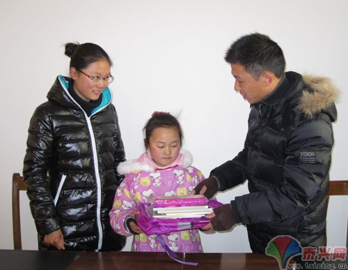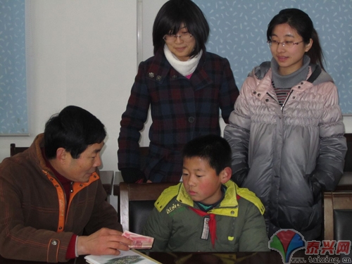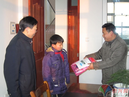 学校负责人唐晨五带头向帮扶的学生周帅资助了200元现金和一些簿本,并勉励他听老师的话,好好学习,以优异的成绩回报老师、回报家人。
