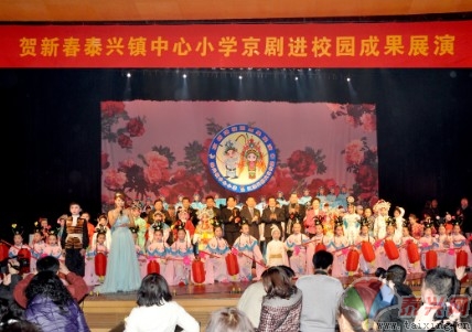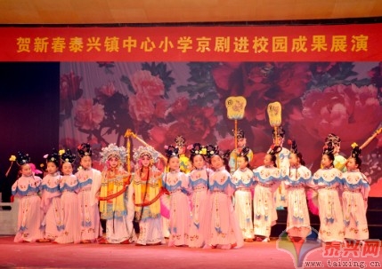 图为泰兴镇中心小学的孩子们表演的《贵妃醉酒》。 京剧作为国粹,对国人的影响深远。近年来,全国政协委员梅葆玖等著名京剧艺术家不断呼吁“京剧从娃娃抓起”,教育部将“京剧进校园”列入了小学课程改革实施规划。为探寻传统文化之根,2008年,泰兴镇中心小学成立了“少儿京剧学校”。