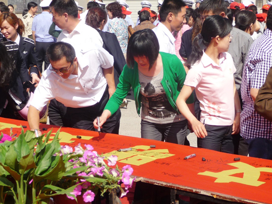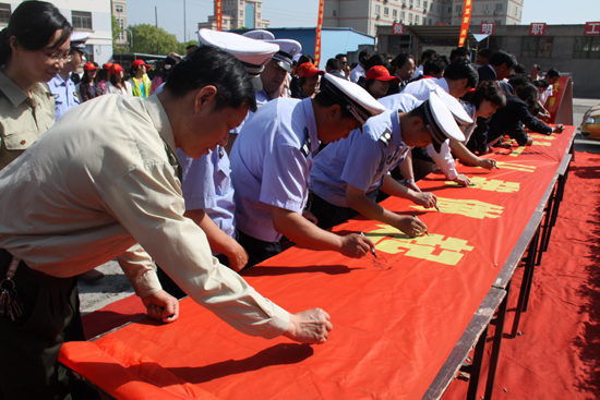 姜文湘作了动员讲话。他指出,城市公共交通是城市文明的窗口,代表着一个城市的形象,直接反映了城市的管理水平和文明程度。近一段时间,我市交通环境整治虽然取得了一定的成效,但闯红灯、机非不分、不戴头盔等违规行为仍时有发生,与我市“四城同创”的要求还有不小的差距。他希望广大市民从自身做起,切实增强文明交通意识,严格遵守各项交通法律法规,杜绝不文明交通行为。同时,市交警部门将加大执法力度,坚决纠正各类交通违规行为。 启动仪式上,出租车驾驶员封纪贵宣读了文明出行倡议书,交警大队、社区志愿者、汽运总公司、公交公司、出租车公司以及危化品公司等方阵代表在“文明交通,从我做起”的条幅上签名。