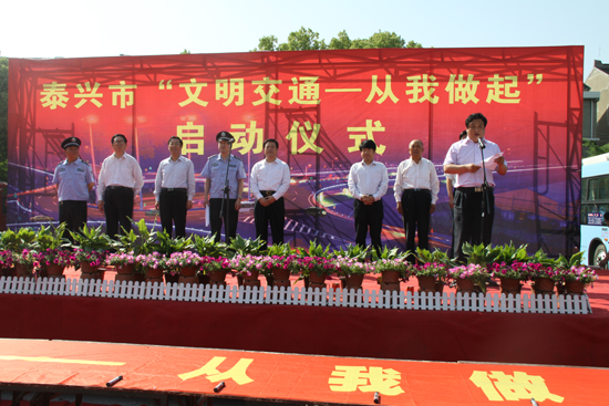 (特约记者 蒋长生 鞠静)城市公共交通是城市文明的窗口,代表着一个城市的形象,也是“四城同创”重要的组成部分。5月13日上午,我市在泰通公交公司正式启动“文明交通,从我做起”专项行动。 市委常委、宣传部部长戴仁泉宣布泰兴市“文明交通,从我做起”专项行动正式启动,副市长姜文湘、林楠出席启动仪式。