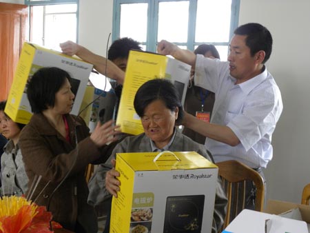 据介绍,这次慰问的特困家庭当中有残疾人家庭,有困难的拆迁群众,还有不少因病致贫家庭。在虹桥镇民政部门和广福村两委会牵头之下,三家爱心商家负责人分别为每个特困家庭送上了一只电饭煲、一只电磁炉、一份端午粽子和400元慰问金,并深入部分困难群众家中走访了解,提前祝愿他们端午节快乐。 当天上午,三家爱心商家负责人还专程前往虹桥镇敬老院,为入住在那里的孤寡老人们捐送了近百件T血衫。 |