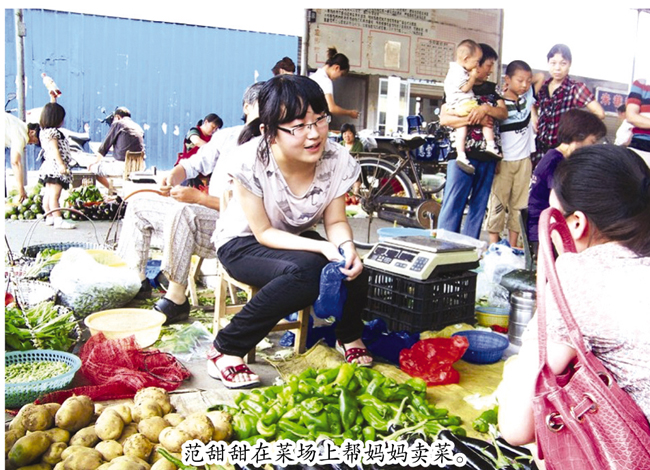 (特约记者 姚翔)右手先天畸形,做什么都只能靠左手,范甜甜知道自己和正常孩子不一样,学习非常刻苦,高考过了本一分数线。她家境比较窘迫,为了筹集学费,高考后每天帮妈妈去卖菜。 菜场上的准大学生 6月28日上午,记者来到了黄桥小学附近的一家菜场,其中一个蔬菜摊位尤其引人注目。摊主是一对母女,二人各守半边,不时有顾客来买菜。介绍菜价、称秤、装袋、递给顾客,女孩十分娴熟老练。 女孩名叫范甜甜,今年19岁,家住黄桥镇,刚从黄桥中学毕业。“这次考了352分,应该可以考得更好些。”范甜甜轻声细语地说。听说有个准大学生在卖菜,顾客们纷纷涌过来。 妈妈何小平今年43岁,面容略显苍老,见大伙都很羡慕,她脸上写满了自豪。 何小平家里共六口人,丈夫范富生患类风湿性关节炎丧失了劳动能力,全靠她卖菜所得及公公微薄的退休金生活。女儿很懂事,高考结束后没睡过一天懒觉,每天早上5点多就起床,陪她去菜场卖菜。学了一两天,范甜甜就会卖菜了。有了女儿帮忙,何小平轻松了不少,营业额也略有增加。最近菜价上涨,生意不是太好,母女俩总要坚持到中午12点才回家。 “上大学要花不少钱,我们要一分一分地攒。”范甜甜说。 小有名气的“左撇子” 父亲范富生说,范甜甜出生不久,就发现她的右手生长缓慢,经诊断系先天性右手畸形。范甜甜被迫把右手的“活”全部转交给左手。 从洗脸、刷牙、穿衣服开始,范富生让女儿用左手。上幼儿园要学写字了,别的小朋友都用右手,范富生逼女儿用左手写字。“得从小让她明白自己和别的孩子不一样。”慢慢地,范甜甜学会用左手写一笔好字。范甜甜不但字写得好,而且速度一点也不比普通人慢。 为了掩饰残疾,范甜甜习惯用左手拿书包和课本,刻意遮掩住右手。平时范甜甜要么穿长袖的衣服,要么将右手插在裤袋里。从小学到高中,很多同学都以为她是左撇子。 范甜甜清楚地记得,一次老师叫她到黑板上答题。她走上去,用左手拿起粉笔,写下一行行娟秀挺拔的字,同学们都十分惊讶。“能写好字证明我不比别的孩子差。”范甜甜说,“左撇子”令她在学校小有名气。 到大学要勤工俭学 当天上午卖菜结束后,范甜甜准备下午去学校填报高考志愿。“我选择了财会专业。”范甜甜说,她准备报江苏大学和扬州大学,目前每天帮妈妈卖菜筹点学费。到大学后打算一边学习一边打工,一来养活自己减轻家里负担,二来可以积累工作经验。 虽然生活能够自理,但对范甜甜来说外出上学还是有点困难的,尤其是冬天洗衣服。由于右手使不上力,因此范甜甜平时在家只能洗些单衣,冬天的棉袄和羽绒服之类的衣服都是妈妈洗。“我打算以后自己洗,锻炼一下自己。” 知道大学生就业形势严峻,范甜甜为自己在大学期间立下了目标,先考会计师,再考注册会计师。“这样毕业后好找工作,能早点挣钱寄回家。” |