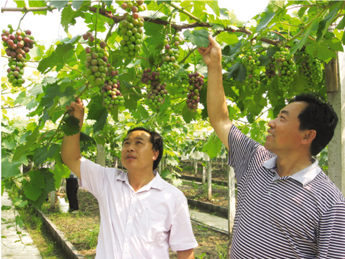 (记者 蔡文)从城区出发,沿着延令路往西行走2公里,蔡桥精品葡萄园就展现在眼前。葡萄园里,美人指、黑提、醉金香、巨玫瑰等优质葡萄硕果累累,农工们正在给葡萄套袋。这个葡萄园是蔡桥村党总支副书记朱小明与葡萄种植能手姜其荣联手创办的。 在葡萄园内,朱小明与记者侃侃而谈。他中学毕业后回村务农,1987年入党,1996年被选为村干部。血气方刚的他,下决心要在发展高效农业上带领村民干,帮助村民富。村民姜其荣曾多年经营葡萄园,经验丰富,后因拆迁,葡萄园被征用。朱小明与姜其荣交谈,两人一拍即合。1998年中稻收获后,村里流转土地80亩,亩租金1500元,一定12年不变。朱姜二人围绕兴建高档次的精品葡萄园做了一系列的准备工作。 他俩先后到常州、张家港、南京等地的葡萄园进行考察,然后又赴南京农大向教授、葡萄专家陶建民请教如何筛选品种。本着人无我有、人有我优、人优我特的建园思路,他们挑选了早熟、中熟和晚熟各几个品种。 品种确定后,他俩组织对葡萄园进行整地,建泵站,修渠道,确保灌排畅通。来年春节前,80亩葡萄定苗全部到位。第一年,葡萄苗小,他俩就实行套作,种植的黄豆、大蒜亩产出超千元,实现了以短养长。由于一着不让抓肥水管理,葡萄园第二年就挂果,亩产鲜果近千斤。秋季在果园套作大蒜。去年,葡萄园亩单产鲜果达到1500斤,今年已进入盛果期,为确保果实质量,葡萄园亩单产将控制在2500斤左右。 朱小明告诉记者,创办蔡桥精品葡萄园有着独特的优势,一是品种优势,二是区位优势,三是交通优势,城区顾客乘18路公交车就可直达葡萄园。为方便顾客进园采摘,园区铺设了水泥路道,近期还将购置10部超市购物车。 朱姜二人创办的蔡桥精品葡萄园日渐红火,他俩没有忘记办园宗旨。在村两委会的支持下,以精品葡萄园为龙头,蔡桥葡萄种植专业合作社于2010年成立了,朱小明任社长,吸收了100多户村民入社。在合作社的积极扶持下,全村发展葡萄栽植600多亩,占全村耕地的半数。 为提高村民葡萄种植效益,合作社注册了商标“琪蜜”,申报了葡萄无公害产品基地,去年夏黑、黑提等5个品种已被认定为国家无公害农产品,今年的美人指等7个品种有望通过国家无公害农产品审定。 “我们计划在近几年内,把蔡桥村建成葡萄专业村,把葡萄园办成鲜果自采超市。此外,还要利用葡萄酿酒,在葡萄园养殖草鸡,办农家乐,成为城乡居民游览、休闲观光的好去处,让村民真正富起来。”朱小明如是说。 |