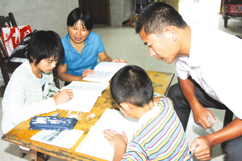 “农村的孩子由于父母亲都要急着出去打工,所以中午学生们一般都很早离开家,曾经发生过在外上网、打架的事,为了不让他们在外犯错误,我要求他们必须在12时50分到校午睡。他们睡了,我就在这里照顾他们并备课和批改作业。”殷亚平介绍。 “殷老师,我的手已经好了,请老师不要担心!”说起这条短信,殷亚平泪流满面,学生小丁也情不自禁地和她拥抱在一起,让外人误认为是一对母女。小丁在一次运动时左手不幸受伤,为了不影响学习,殷亚平像照顾自己女儿一样,关心着她的生活和学习。去年,小丁去外地医院治疗,病情刚有所好转,小丁就迫不及待地发短信告诉她。小丁说:“殷老师就像我母亲,值得我信任。” 下午第二节是殷亚平的语文课,今天讲的是《陈涉世家》,记者走进课堂也深深被殷老师深入浅出的讲解所吸引。第三节是她的班会课,这次她和学生们一起讨论的题目是:如何做朋友? “孩子学习在班上第7名,我们一定会照顾好她,让她的父母在外面放心......”每天下午5时35分,是放学时间,殷亚平总是和6名留守孩子一起走出校门,一一交给他们的家人。女生小吴的父母在外打工,爷爷奶奶相继去世,由外公外婆负责照料,当她们不能安时来校时,殷亚平总是和老公一起把她送回家,并辅导她做完作业再离开。 天黑了,记者一天的生活体验结束了,和殷亚平告别时,她的手机又突然响起来,有一孩子突然肚子疼得厉害,爷爷奶奶束手无策,请她速去帮忙。殷亚平夫妇二话没说,骑上车消失在夜幕中。 |