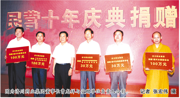 9月10日下午,济川药业集团举行隆重的典礼,庆祝企业改制为民营企业10年来所取得的辉煌发展成就。泰州市领导杨峰、胡冬生及省市相关部门负责人,张兆江、高亚梓等我市领导和部分园区、乡镇、部门主要负责人参加了庆典。 庆典活动通过诗朗诵、专题片等形式回顾了济川集团改制为民营企业后,在市场营销、产品研发、人才引进、企业文化建设等方面取得的喜人成就。2001年,济川药业改制为民营企业。改制10年来,企业不断强化市场开拓和产品研发,经济规模不断壮大,从一个资不抵债1790多万元的企业,发展成为年销售23.89亿元、纳税2.1亿元的重点骨干企业。 泰州市委常委、常务副市长杨峰,泰州市卫生局局长顾弘庆,我市市委书记张兆江等分别致辞,对济川药业10年发展取得的成就表示祝贺。 张兆江说,济川药业是全市的重点骨干企业,更是医药产业的龙头企业。10年的发展,济川药业在全国医药行业确立了应有的位置,为全市经济社会的科学跨越发展作出了重要贡献。张兆江希望济川药业以民营10周年为契机,立足新起点,确立新标杆,谋求新跨越。要始终以做大做强为目标追求,加大开发投入力度,加快济川药业工业园二期工程建设,不断强化市场营销,积极推进企业上市,早日实现翻一番、超百亿的目标。 张兆江指出,医药产业是泰兴的支柱产业,也是“十二五”期间全市产业培育的重点方向。作为全市医药产业的龙头企业,济川药业要始终以创新发展为根本路径,努力做全市产业、企业转型发展的排头兵。市委、市政府及各园区、乡镇(街道)、部门将一如既往地关心和支持企业发展,努力为企业提高多层次、多方位的服务,促进企业健康、持续、快速发展。 济川药业集团董事长曹龙祥回顾总结了企业10年的发展成就和经验,并向市慈善总会、泰兴中学、黄桥老区经济建设促进会、特殊教育学校和佛教协会捐款,捐款总额360万元。济川药业集团干部员工一起合唱济川药业主题歌《远航》,祝福企业踏上新一轮发展征程。 |