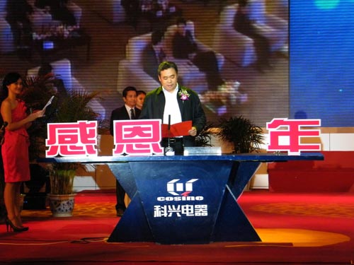 总经理姚海明致辞 鲜花伴随掌声,庆典活动在欢乐的气氛中拉开帷幕。科兴电器董事长姚金龙致欢迎辞,回顾公司在过去十年中追求卓越,努力拼搏,勇于创新,从艰难走向辉煌的创业史,表达公司对未来发展的雄心和壮志,热情洋溢、充满激情的演说赢得大家的热烈掌声。