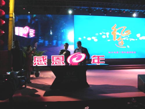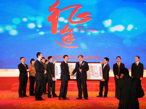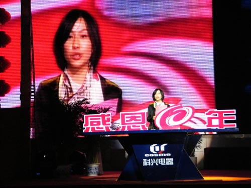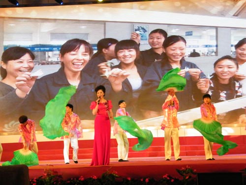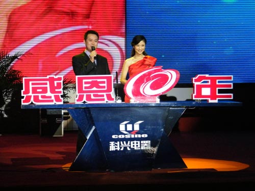 职工献上公司10岁生日绣匾 江苏广播电视总台卫视频道当红主持人、导演金海宁主持并领携众明星亮相科兴电器“征途·感恩10年”大型庆典晚会。 |