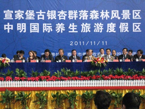 宣家堡古银杏群落森林风景区由浙江中明控股集团总投资,项目总投资一百亿人民币,建设周期为6-8年。将以银杏养生为轴,在现有古银杏群落森林风景区建设的基础上,打造古银杏群落森林养生旅游度假区、生态旅游文化娱乐区、生态新城建设区三大板块,重点建设银杏博物馆、养生度假区、主题广场、文化街区、清明上河图、欢乐谷、三面观音、苏中“七战七捷”纪念馆等景点。其中,一期工程投资15亿元人民币,主要建设景区东大门、核心区河道水系、清明上河图、银杏科技展览馆等八大工程。