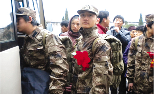 (记者 蔡艳 特约记者 封志龙)12月8日上午,在一阵热闹的鞭炮声中,我市15名新兵胸佩大红花,穿着崭新的军装,在祝福声中告别亲人,踏上前去西藏的征程,开始崭新的军旅生涯。 “选择当兵,就要去最艰苦的地方接受锻炼,克服一切困难,做一名合格的军人,为家乡人民争光。”来自张桥镇的桂年峰,今年从泰州师专毕业,主动选择入伍。即将踏上军旅征程的他感到非常高兴。他说,到部队后一定好好干,刻苦磨练自己,努力在边疆建功立业。 据了解,这是我市第二批奔赴西藏的新兵,他们将在四川接受体检和高原环境适应训练,然后奔赴西藏拉萨。 |
