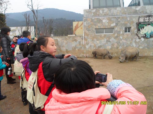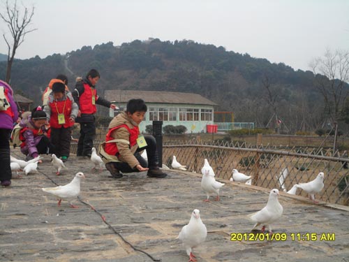 始建于1956年的无锡动物园是省级科普教育基地,这里居住着来自世界各地的100多种1000多只珍稀野生动物,除了禽类馆、非洲食草区、猛兽区、亚洲食草区、灵长区等主要场馆设有壕沟、玻璃墙、铁丝网等隔离防护设施以外,天鹅、鸽子等无攻击性的动物完全散养在室外,孩子们可以与它们零距离接触。正当孩子们兴致勃勃地投喂鸽子时,一只胆大的小松鼠从附近山上的树林里窜到了孩子们中间东张西望,引得孩子们大声地欢呼起来。
