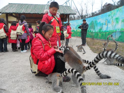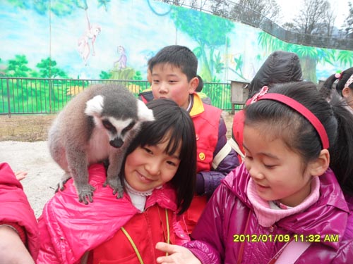 在饲养员阿姨的指导下,孩子们蹑手蹑脚地走进节尾狐猴的馆舍,轻轻地把苹果送到这些小精灵的面前。这些狐猴显然已经阅人无数,毫不客气地大吃起来,有的还跳到了孩子们的背上或肩上,孩子们反倒显得拘谨起来。 “大象的气味为什么这么难闻?大熊猫的颜色为什么不是白的?猴群里的大王怎么不出来?”游玩之余,孩子们没有忘记此行的目的,纷纷围着饲养员采访各自感兴趣的话题,并且认真地做着记录。小记者季楠在采访记录上认真地写道:“我觉得这一次的寒假实践活动特别有意义,我们必须发自内心地珍惜人与动物之间的友谊,保护好它们,与大自然和谐相处。” |