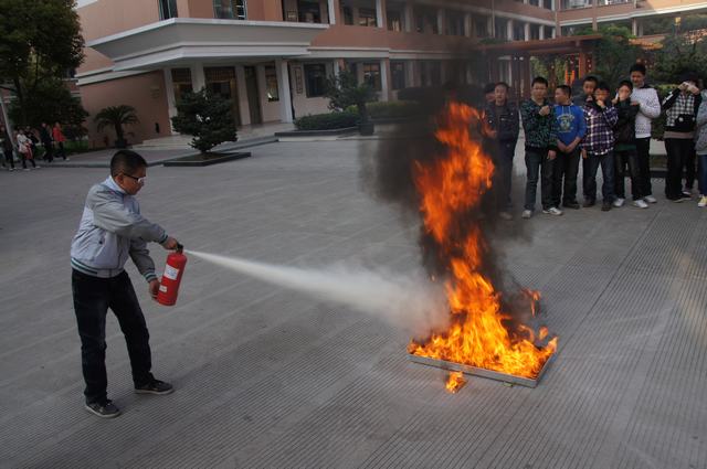 下午2点30分,警报响起,各班班主任迅速组织学生按指定疏散路线撤离教学楼。负责各楼层疏散的教师也于第一时间赶赴指定位置,对学生进行安全疏导。学生们安全、有序地撤离到指定地点,各班清点人数,向总指挥汇报。最后,消防部门负责人还为同学现场演示了使用灭火器的方法。