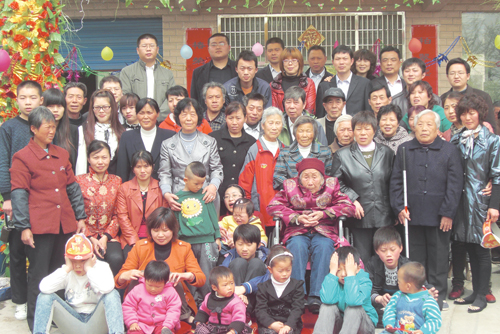 (记者 耿凤)“长子王歧携夫人上前拜寿,一叩首祝奶奶福如东海水长流,二叩首祝奶奶寿比南山身骨好,三叩首祝奶奶心想事成万事如意……”4月15日,从广陵镇通靖村的王老太家中传出司仪慷慨激昂的声音。这天是王老太100岁寿辰,家人为她准备了隆重的生日庆典。 这么一大家子人共同为老太拜寿,这场面还是头一次看到。村民们纷纷赶来凑热闹。记者随着人流走进王老太家,院子里装饰得喜气洋洋,晚辈们分别从北京、上海等地赶回来给老人祝寿。王老太端坐在中央,口齿仍然很清楚。看着儿孙满堂,老太甭提有多高兴了:“今天100岁咯,家中这么多人都到齐了,我心里高兴啊!” 据介绍,王老太育有三子一女,现在五代同堂,儿孙曾孙共有七八十人。从上海赶回来的曾孙王建说:“我们赶回来祝贺太太百岁大寿,难得五代人聚在一起,祝福太太身体健康长命百岁,同时我们也会把这种精神传递下去作为儿女的榜样。” 家人告诉记者,王老太除了偶尔感冒基本不生病,去年到医院做全面检查都挺健康的,天气暖的时候还会到外面走动走动。老人平时生活非常规律,每天早晨起来后,都要先喝一杯盐开水,然后才吃早饭,几十年如一日。记者问有什么养生秘诀,家人回答说:“还真说不出特别的地方,平时我们家也没什么忌讳,想吃什么就吃什么。” 虽然已是百岁高龄,但王老太神智清楚,还时常叮嘱子女要踏实做人。三儿子王森告诉记者:“我妈平时总对我们说,做人要实实在在,不要去骗人,也不要搞封建迷信,只要不做愧对良心的事,就能长寿。” |