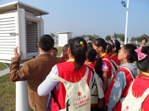 小记者们先后观看了气象知识和灾害性天气预警信号及防御常识展板,参观了气象预报中心和气象观测场,认真聆听了气象科普知识讲座,并就自己感兴趣的话题采访了泰兴气象局工作人员。