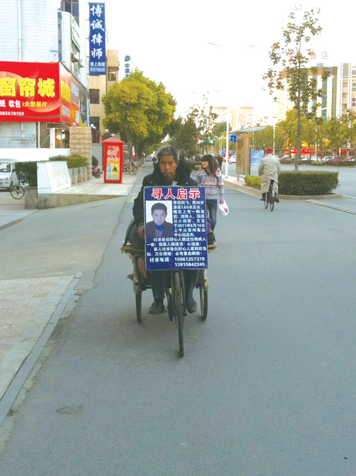 “我没有家,我的全部财产都在这辆三轮车上” 初到常州,向兴全在堂弟的陪同下,在当地各大公交沿线寻找。在警方的帮助下,向兴全在道路监控画面看到儿子在常州客运中心站下了车。苦苦在客运站守候了数日,始终不见儿子的身影,于是,向兴全把搜索圈扩展到常州各个乡镇及周边城市。寻找儿子的漫漫征途就此开始了。 据向兴全介绍,起初他为了省钱,总是步行,一双解放鞋,一路走一路找,十多天下来,双脚都磨出了血泡。为了能尽快找到儿子,他在废品收购站花了110元买了辆旧三轮车代步。去年9月底,耗尽积蓄的向兴全,托家乡亲戚将房子及所有家当变卖。“当时卖了11000多元。这些钱,我舍不得用,大部分都是用来印发寻人启事、刊登寻人广告的。为了能让有线索的人及时联系我,我还买了部手机。只要有儿子的线索,我就会连夜赶过去。”于是,向兴全骑着一辆三轮车,踏遍了常州、溧阳、无锡、金坛、镇江、苏州、南京、扬州、泰州等21个城市,磨破了4双解放鞋、3副车胎。 记者在向兴全的三轮车上看到,小到锅碗、雨伞,大到硬纸板、棉被,他带齐了所有家当。“我没有家,我的全部财产都在这辆三轮车上,吃的、穿的、用的都放在车上。”说着说着,向兴全抱着一个厚重的旧电脑包告诉记者,“这些都是我印的寻人启事、求助信等等。只要有人给线索,我就到那里找,询问当地的派出所民警、社会人士等等,给当地人发广告,找能贴的地方贴几张寻人启事。其他都不重要,这些纸才是最珍贵的,它是我寻找儿子的希望。” 记者在向兴全的三轮车后面,看到了一个装着许多空瓶子的袋子。“为了找儿子,我身上的钱全都花光了,现在就靠捡废品为生。幸好有很多好心人帮忙,这一路下来,他们给我衣裤、鞋子、吃的等等。你看,我脚上穿的鞋子是南京一好心人送的。真的很谢谢他们。”向兴全摸摸身上的衣裤,很是感激地说。记者看到,他的鞋子早已磨掉了皮,鞋底开裂,鞋头也全是泥。这是向兴全磨破的第5双鞋,至今他仍穿着,舍不得丢。 “只要能找到儿子,我就满足了” 尽管向兴全走遍无数大街小巷,张贴、刊登过多次寻人启事,但效果甚微,甚至在路途中被偷走800元现金、被车辆擦伤左腿,他始终不曾放弃寻找儿子。 11月8日,是向兴全达到泰兴的第一天,人生地不熟的他只能推着车在电信局附近等。“当时有人联系我说看到了貌似我儿子的人,我就让他赶紧把人留住,可他说是回家看完报道后才知道那人可能是我要找的,但现在人都不知道在哪里了。”向兴全看着寻人启事上儿子的照片说,“到泰兴的第二天就下大雨,我只能在电信局附近找个能挡雨的地儿睡了。” 每天十多个小时骑车,骑到哪里,睡在哪里。街头、桥下、路边等,是向兴全经常歇息的地方。而吃饭对他来说,更是简单,一日一餐。“我吃饭都是挂面、馒头,用石头支起锅内胆,再找点枯树枝生火煮面吃,2元/袋的挂面能吃两天,没有热水的时候就吃馒头充饥。每天花1元买吃的,当我感觉饿得头昏眼花的时候,拿出来吃点,一天一顿就够了。”向兴全掏出一个4天前买的馒头告诉记者。记者用手一摸,冰凉的馒头皮已发硬了。 在记者的陪同下,向兴全拿着寻人启事来到济川派出所。在得知向飞可能流落泰兴的消息后,民警徐贯生表示:“我们会在市区及各乡镇发布寻人启事,极力帮你寻找儿子。” 天色渐渐暗了,寒风里的向兴全有些瑟瑟发抖,鼻尖冻得通红,嘴唇干裂起皮,眼睛里布满了血丝。“之前有人在南京看到他,我找过去发现不是我儿子。现在,有人在泰兴看到了,但我又没有找到他。我不知道该去哪里找。每天晚上一合眼,我就会想到儿子,担心他会不会被人欺负,会不会挨冻受饿。我不怕苦不怕累,只要能找到儿子,我就满足了。”向兴全红着眼眶,颤颤地说,“我向泰兴城区的一些出租车司机、屋顶维修工打听过,有人说看到过我儿子,下一步,我想去泰兴各乡镇转转,看看有没有他的线索。” 向兴全握着记者的手,再三表示感谢并希望记者通过微博等网络途径帮他寻找儿子。向兴全的儿子向飞今年26岁,嘴右上角有一颗黑痣,文盲,弱智,湖南口音,语速较快,生活能自理。如有市民见过向飞,请速与向兴全联系:15961257379。 |