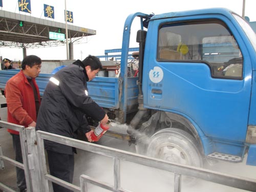 9时50分,一辆车牌号为苏D3K893的蓝色货车驶入该站二号道口,右前轮突然冒烟起火,而车上司机毫无察觉,工作人员项珂及时发现并通知车主和监控员,相关负责人紧急启动应急预案,指挥灭火,先后共使用灭火器4个,短时间内控制了火势,最大限度降低了车主的损失。