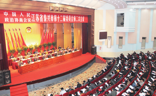 市委书记张兆江代表中共泰兴市委向大会的召开表示热烈的祝贺,向与会的各位政协委员和各位同志致以诚挚的问候。他说,刚刚过去的一年,市政协团结带领广大政协委员,认真履行政治协商、民主监督、参政议政职能,各方面工作都取得了显著成绩,在促进全市科学跨越发展中发挥了重要作用、作出了突出贡献。 张兆江说,市第十二次党代会第一次年会提出了2013年全市发展的总体要求,市政协和广大政协委员要进一步增强责任意识和忧患意识,真正把思想和行动统一到中央和市委的决策部署上来,把智慧和力量凝聚到推进转型升级、特色发展上来,在跨越发展上建言献策,在争先进位上积极作为。 一要始终坚持把促进科学发展作为政协履行职能的第一要务。市政协和广大政协委员要围绕加快推进转型升级献计出力,围绕加快培育特色产业调查研究,围绕激发发展活力参政建言。 二要始终坚持把服务人民作为政协履行职能的出发点和落脚点,在惠民生、促和谐、保稳定上发挥更大作用、作出新的贡献。 三要始终坚持把加强自身建设作为政协履行职能的重要前提,切实加强思想政治建设、制度建设、专委会建设和政协机关建设。进一步推动政协工作再上新水平、开创新局面。 四要始终坚持把加强党的领导作为政协履行职能的根本保证。全市各级党委、政府要充分认识人民政协在促进经济和社会各项事业发展中的重要作用,积极为人民政协履行职能创造良好的工作环境。