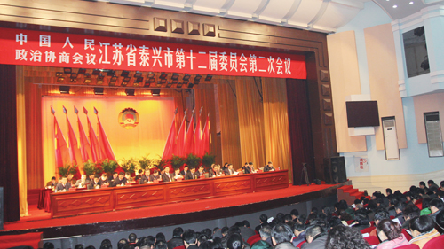 市委书记张兆江,市长张育林,市委副书记孙云,市政协主席李仁国,副主席高寿林、张春山、薛晨光、刘建、顾爱军、孙钬在主席台前排就座。市委、市人大、市政府领导、市政协调研员、市政协联谊会理事长、市政协秘书长在主席台就座。 大会对优秀政协委员和优秀提案进行了表彰。 大会通过了提案审查报告和《泰兴市政协十二届二次会议决议》。