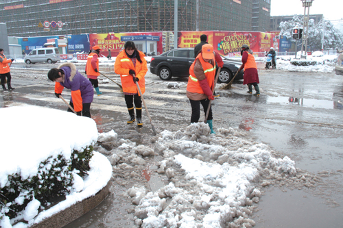 面对这场突如其来的大雪,市城管局全面启动应急预案,该局机关工作人员、城管行政执法大队、市容环境卫生管理处共1000多人,在我市各区域展开了清扫路面积雪的行动。 2月19日上午,市城管执法大队副大队长孙雪庆告诉记者,在这场大雪期间,他们落实了24小时值班和领导带班制度,随时关注天气变化情况,并在第一时间向领导汇报,做到信息互通、相互配合。在实施应急预案的基础上,抓好正常工作,做到两不误、双促进。 环卫工人蒋玉凤负责的片区是国庆新村东大门,因为暴雪,她被临时调到了附近的十字路口。“您几点上路的?”记者问道。“往常都是早上5点,但是这次雪太大,电瓶车打滑,路上不敢开快,到这里时已经5点10分了。”蒋玉凤说话时头也不抬,腰一直弓着,手里的铁铲也没有停下。记者了解到,为了不影响上路,她早饭也没来得及吃,就往这里赶。和她一起铲雪的6位同事也都没有吃早饭,“十二点后直接回去吃午饭,吃完继续过来清雪。”环卫工人陈金凤回答道。 “还要多久能扫完?”记者问。“争取十二点能把这个路口扫结束。”蒋玉凤告诉记者,如果不是市环卫所应急调配了铲车,她们的工作量会更大,“这里已扫了近四个小时了,还有一个方向没有清理。” 各部门:义务扫积雪 2月19日上午一上班,市级机关部门工作人员主动走上街头义务扫雪,为大家安全出行提供方便。 在市食品药品监督管理局门口,数十名工作人员扫完大院里的雪,又走上了人行道。大家齐上阵,握着大扫把、抄起大铲子,把道上的积雪扫得干干净净。市教育局也出动了二十几位工作人员,雪地里大家干得热火朝天。他们说:“扫雪铲冰是举手之劳,我们不仅会主动‘自扫门前雪’,还会出来扫除‘他人瓦上霜’,为大家出行贡献一份力量。” 市新华书店办公室副主任孙志勇说:“上午到班后,我们就立即组织大家到街上义务扫雪,让市民平安出行。” 2月19日上午,市档案馆院内热火朝天。原来,市档案馆主要负责人正带着一群小伙子在扫雪除冰。他说:“院子里这么多雪,来我们档案馆查询档案的群众通行不方便。”简短朴实的话语里饱含着为人民服务的热情。在大家的共同努力下,档案馆院内从门口到查档大厅的积雪很快被铲除,形成了一条整洁干净的道路。来馆查询档案的群众走在这条道路上,啧啧赞叹,直夸档案局人想得周到,工作作风好,是人民的好公仆。 交警:全力保畅通 大雪来临,市公安交巡警大队立即启动雨雪天气突发情况应急预案,12个中队的干警们全部上岗执勤,所有警车全部上路亮灯巡逻,通过喇叭喊话提醒驾驶员缓慢行驶,注意防滑。 为了应对大雪带来的交通拥堵等状况,市公安交巡警大队以路面上车、人流量变化为主要依据进行路面管控,加大巡逻力度,强化对重点路段的管控,确保一旦路上有紧急情况能及时有效处置。18日晚上7时—11时,在城区,市交巡警大队12个中队的干警们上路执勤,冒雪疏导交通,通过鸣笛、喊话、闪烁警灯等方式,提醒驾驶人注意行车安全,保持安全车速行驶;在我市东、南、西、北四个入城口,实施24小时值班制,为过往车辆提供出行服务,及时采取分流、间断放行、警车带道通行等方式,加强交通组织和疏导,并对驾驶人进行天气和路况提示,告诫驾驶人尽量避免外出,就近休息。同时,市公安交巡警大队立即与相关部门联系,组织精干力量和先进机械第一时间对道路积雪进行有效清除,对险路险桥、上下坡等易结冰路段,及时除雪并撒上防滑沙、融雪剂,确保路面交通条件。 “这样的雪天,你们执勤辛苦了!”过往车辆中,不时有人摇下车窗热情地问候他们。他们也回以叮嘱:“雪天路滑,慢点开!” 市客运站:全力保安全 受大雪天气影响,路面积雪,市客运站中长途车辆、公交车辆暂时停运。对此,市客运站立即启动了应急预案,加派人手值班,及时疏导旅客,并即时发布客运班次发车、停运情况,提醒出行旅客注意。经市客运部门积极应对,各客运站均未发生出行旅客滞留现象。 2月19日凌晨1时—5时,市运管处出动401人次,安排49辆工程机械车深入各主要干线,倾洒工业盐22.5吨,加速积雪融化。针对天气恶劣、长途班车晚点的情况,市运管处还组织站务人员重点帮助和安抚老、弱、病、残、孕等乘客,真正让广大旅客走得顺畅、走得舒心。 2月19日上午10时,市客运站及公交车辆恢复正常运行。“雪天路面湿滑,发车前我们已提前告知各司机,在各个路段行驶时一定要慢,并听从路政管理人员的疏导,特别在高速公路段做到不超载、不超速、不超限。”市客运站工作人员说,“由于道路湿滑,部分客车会减速行驶,会有晚点现象出现,希望广大市民见谅。” 新街:努力降低大棚受灾 2月18日夜间至19日凌晨的一场大雪,使得新街镇高效农业受到严重影响。“2月19日一大早,高效农业园区的工作人员赶赴各个受灾种植户的大棚前,带领菜农进行棚顶除雪并对受灾农作物进行及时处理。”新街镇农业技术服务中心主任刘根新说。 菜农们在园区工作人员的指导下,采取了补救措施:摘下了被大雪压倒的大棚里面已经成熟的蔬菜;对一些还没被压断的蔬菜苗采用移植的方式,转移到温暖、安全的地方;支起被大雪压倒的蔬菜大棚,同时覆盖上薄膜,尽量降低蔬菜被冻坏的可能。 刘根新告诉记者:“园区90%的蔬菜大棚参加了高效农业保险,保险公司的工作人员将到现场对
