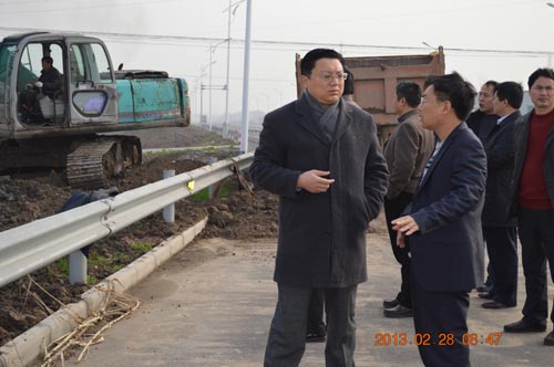 (记者 孙纪刚)2月28日上午,副市长、虹桥工业园区党工委书记、虹桥镇党委书记孙群率领园区规划、建设等部门和施工单位负责人视察了虹桥新城鑫海桥、河滨生态公园、行政中心、学校和同德安置小区等重点工程建设推进情况,逐一点评分析工程推进存在的问题和不足,要求各部门单位排足工作量,认真督查,狠抓落实,确保如期实现“五年巨变”目标。