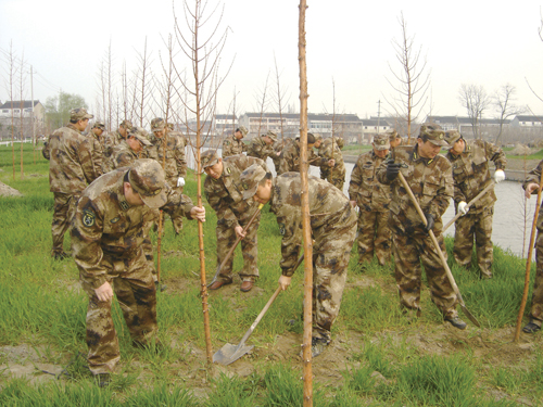(记者 耿凤 特约记者 封志龙)3月12日上午,市委常委、市人武部政委陈岷带领30多名民兵、预备役人员、专武干部来到济川街道渡河村参加义务植树活动。 他们有的挥锹铲土,有的扶植树苗。一上午,市人武部官兵在两泰官河沿岸植下200余棵水杉树。据了解,植树节过后,市人武部还将组织人员定期对所栽树木进行浇水、施肥等后期维护,确保树苗成活率。 此次活动,既锻炼和检验了民兵预备役队伍的快速反应能力,又提升了专武干部、民兵骨干的组织指挥能力,树立了民兵队伍的良好形象。据悉,每年在植树节前后,市人武部都会组织民兵预备役人员开展义务植树造林活动,用实际行动支持生态建设,为建设绿色泰兴贡献自己的力量。 |