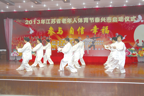 5月18日上午,2013年江苏省老年人体育节泰兴启动仪式在姚王镇举行,来自姚王镇、济川街道、女企业家协会和老干部局等单位的老年朋友欢聚一堂,以欢快的表演共同迎接老年人体育节的到来。 演出在绸舞《好收成》的欢快旋律中拉开帷幕。姚王镇桑木村老年腰鼓队带来的《腰鼓》节奏明快,欢乐的韵律敲出了老年人满腔的幸福。《健身球操》、《太极拳》、《抖空竹》展示了我市老年人热衷体育,健康向上、老有所乐的精神风貌。 市人大常委会副主任王中先以及相关部门负责人出席启动仪式并观看了文体节目展示。 近年来,我市老年人健身活动丰富多彩,水平不断提高,门球、乒乓球、健身球操、太极拳等项目均列泰州四市两区前列。 |