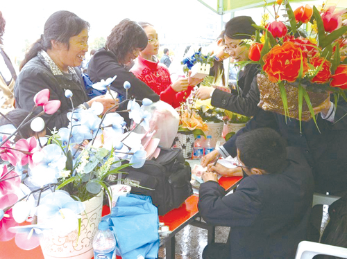 (记者 王欢 通讯员 张萍)“这是什么花?”“多少钱一盆?”……在鼓楼广场,五颜六色的“花”很吸人,路过的市民都不禁停下脚步好奇地打探一番。5月18日,市残联开展“花载温情,凝聚感动”丝网花义卖活动。玫瑰、荷花、牡丹、郁金香……从娇艳的单枝丝网花到造型精致的花束、盆花,种类丰富,形态自然。 来自市二高的志愿者任俐说:“这是我第一次参加义卖活动,尽管只卖出几朵花,但想到能够帮助残疾人,我就觉得很有意义,我自己也买了一朵。” 在一旁的展位上,剪刀、铁丝、胶水等工具一应俱全,绕铁丝、缠线、扎花……几名残疾人正熟练地完成每一个制作环节,从最简单的马蹄莲、百合,到步骤很复杂的圣诞红,似乎都难不到他们。“尽管经过培训,但这里的残疾人有的是智力残疾,有的是肢体残疾,根本不可能独立制作出一朵花。”市残疾人托养中心培训护理师严美玲告诉记者,“现在他们分工负责,每人完成一道工序。这些制作环节看似简单,但对他们来说已经很不容易了。” 义卖现场,一位爱心女士掏出200元却只拿走了一盆价值60元的盆花,还没等工作人员反应过来,她已经悄悄离开了。而现场像这样的匿名爱心市民还有很多。据了解,义卖当天所得将全部用于补助困难残障的残疾人托养中心园友,帮助他们改善生活。 |