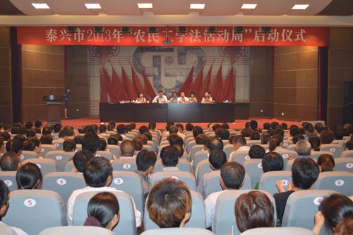 今年6月17号到6月23号是我省的农民工学法活动周。经过将近五年的跨越发展,虹桥工业园区已经成为泰兴沿江大开发的主战场和经济发展的重要增长极,吸引了五湖四海的农民工纷纷前来务工就业,并成为园区建设发展的一支重要力量。泰兴市法制宣传教育工作领导小组决定与虹桥工业园区共同举行“农民工学法活动周”启动仪式,进一步引导农民工养成崇尚法治权威、严格依法办事的思维习惯和行为方式,有序推进农民工市民化进程,更好地维护农民工合法权益。