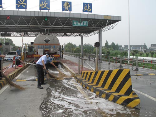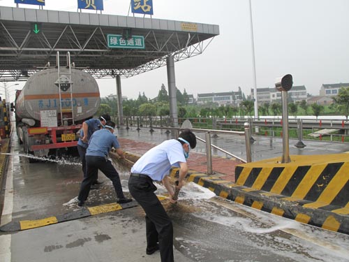 (通讯员 殷剑锋 毛雨)6月27日下午,江平线泰兴口岸收费站组织全体专兼职安全管理员及当班班组人员共18人,开展了一次危化品运输车辆事故应急预案演练活动。