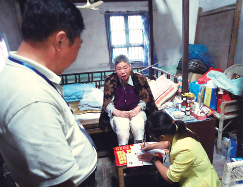 (记者 燕丽娟)9月5日上午,黄桥镇人社所工作人员来到该镇花园新村王美娟老人家,为今年73岁、腿脚不便的老人上门体检和登记养老金领取资格证书。