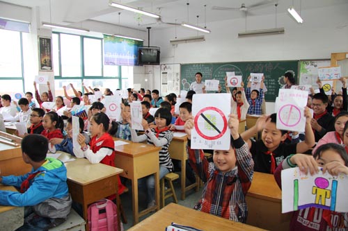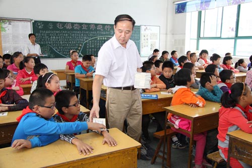 9月27日下午,市质监局和教育局负责人来到济川小学,向同学们分发安全使用电梯手册,并组织学生观看了电梯宣传片。