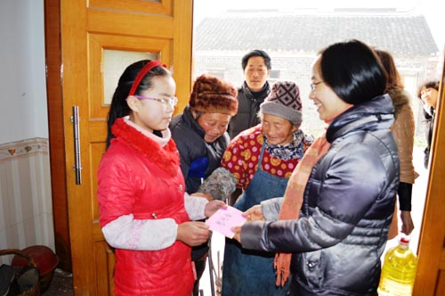 同日上午,虹桥镇计生服务站还牵头慰问了清水村、通石村的两位贫困女童和三位计生特困群众。目前正在读初二的杨雨佳父亲早年病逝,母亲改嫁他乡,只得与年迈的爷爷奶奶相依为命,靠每月400多元的低保金维持生计。通石村的石晓燕品学兼优,但是父亲智障,母亲离家出走,同样和爷爷奶奶一起生活。虹桥镇相关负责人勉励孩子们用功学习,自立自强,将来成为社会有用之才,并希望孩子们学会感恩,回报爷爷奶奶的养育之情。 |