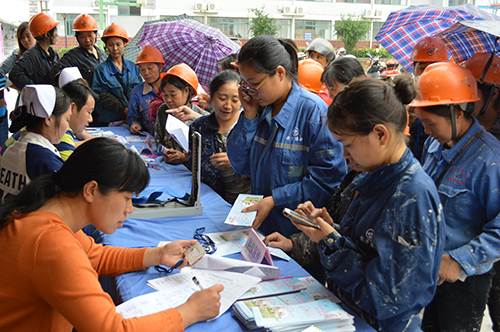 (特约记者 徐华 刘进 记者 孙纪刚)9月18日上午,以服务企业流动人口为重点的泰兴市“亮品牌、送服务”进企业活动在虹桥镇启动,虹桥镇计生服务站和蒋华卫生院卫技人员来到扬子鑫福造船有限公司“摆摊设点”,为外来务工人员提供政策咨询、行政事务办理和疾病筛查、健康体检等方面服务,并免费发放计生药具,受到了外来务工人员的欢迎。活动当天,共有近千名外来公务人员前来咨询体检。 市人口计生委相关负责人介绍,以“计生进企业、服务你我他”为主题的“亮品牌、送服务”进企业活动,旨在宣传“世代服务、服务世代”品牌创建成效,通过组建“企业计生服务小分队”,深入到企业车间、办公区、生活区开展面对面宣传、咨询和随访服务,提高群众对“世代服务、服务世代”品牌的认可度和对人口计生服务工作的满意度。 为提升活动效果,泰兴市人口计生委和各乡镇制定了周密的“服务月”活动方案,虹桥镇将组织“企业计生服务小分队”深入到全镇外来务工人员相对集中的10多家重点骨干企业和新市、七圩、蒋华农贸市场开展服务,并加大了活动宣传力度,便于各村和其他企业的流动人口就近接受服务。 |