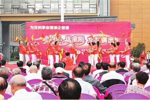 (记者 庄磊 通讯员 俞宛生 倪晶)9月26日上午,市委老干部局举办“迎国庆·庆重阳”文艺演出,来自市老干部艺术团的演员们自编自演了器乐演奏《喜洋洋》、合唱《光荣与梦想》、舞蹈《大江儿女》等精彩纷呈的节目,展现出老人们对幸福生活、美好未来的热爱和向往,体现了老年人老有所学、老有所养、老有所乐、老有所为的精神风貌,也表达了老年人对党的热爱和对建国65周年的深情祝福。 在国庆65周年华诞和重阳节即将到来之际,从9月26日到10月10日,市委老干部局组织全市老干部支部书记和机关部门副乡局级以上离退休干部,参加了“迎国庆、庆重阳,为党的事业增添正能量”系列活动。活动除了文艺演出之外,还包括市老年书画协会举办庆国庆、贺重阳书画作品展,共展出协会会员85幅作品;市老干部集邮协会举办首届收藏品展览,共展出集邮、书画、剪纸、票证、纸币32项;请市委党校负责同志为老干部作国际国内形势报告;分别在市文化博览中心和文化艺术中心,举办我市中国书协会员徐伯生先生书法作品展和泰兴籍新四军老战士洪炉从军从艺70周年纪念展览。连日来,老干部们通过参加上述活动,更加激发了对伟大祖国的无比热爱和无限深情,决心在有生之年,为实现中华民族伟大复兴的中国梦,释放更多的正能量,做出更大的贡献。 |