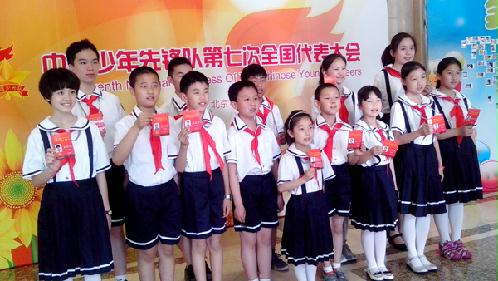 一到学校,蒋佩珏就和同学们分享了出席这次全国省会的收获。她说,这次的少代会之旅虽然很辛苦,每天都有很多的会议,要参加很多的活动,晚上总是要到十一二点才能休息,但她的收获更多!蒋佩珏说:“这次参加全国的少代会,让我有机会认识了很多优秀的少先队员。以后我要以他们为榜样,听习爷爷的话,努力培养好思想、好品行、好习惯,今天做祖国的好儿童,明天做祖国的建设者,实现我们美丽的中国梦。” 5月28日赴京参加全国第七届少代会之前,蒋佩珏等第七届少代会代表前往南京参加集体培训,开启了她的少代会之旅。到达南京后,蒋佩珏同学和所有的小代表、辅导员老师一起投入了紧张的会前培训活动。江苏省总辅导员华耀国做了专题讲座,所有代表还受到了省委书记罗志军的亲切会见。 6月1日,第七次全国少代会在人民大会堂举行。会议结束后,习近平总书记接见了所有代表。位于前排的蒋佩珏同学感到无比幸福。“我心里暖暖的!因为习爷爷和我握手啦!” 6月2日,蒋佩珏幸运地登上天安门城楼观看了升旗仪式。当看到解放军叔叔穿着整齐的军装,迈着整齐的步伐从自己身边走过时,蒋佩珏无比激动!看到鲜艳的五星红旗冉冉升起,蒋佩珏高声唱起了庄严激昂的国歌。 |