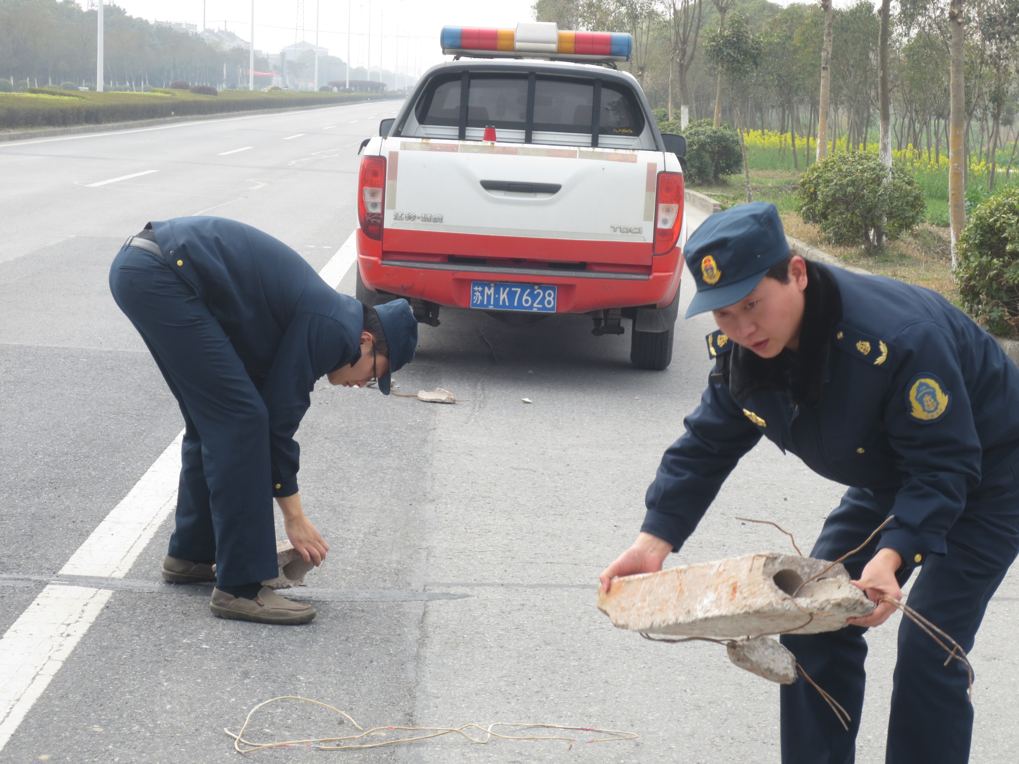 3月16日下午,市公路管理站路政人员巡查至S334省道148K+800M上行处,发现路面多处散落较大废旧砖块,给过往车辆及行人带来严重的安全隐患。路政员立即下车,徒手对路面砖块进行清除。同时,找到抛洒源头要求车辆停止运输,并向负责人说明了抛洒的危害性,要求其严格把关、及时整治,严禁不合格车辆和存在抛洒隐患车辆上路行驶,杜绝抛洒滴漏。