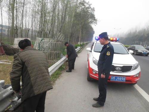 3月18日下午,泰兴公路站路政执法人员巡查至S334省道138K+460M左侧(姚王镇)段时,发现路边的防撞护拦少了一片。经现场调查,发现是公路边收购拆迁品的老板为方便自己装卸货物擅自拆卸的。路政人员当场对其宣讲了公路法律法规,当事人在执法人员的监督指导下,对该片护拦进行了安装恢复,并保证以后再也不私自拆卸路边护栏。